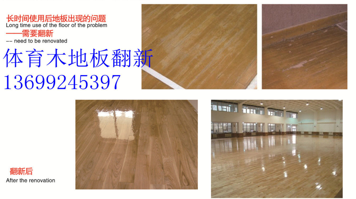 體育木地板翻新施工流程: